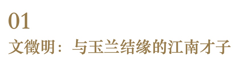 文徵明曾孙文震亨,曾著有罗列晚明苏州雅士精致生活的《长物志》,书中有“玉兰”一栏云:“玉兰,宜种厅事前。对列数株,花时如玉圃琼林,最称绝胜。”