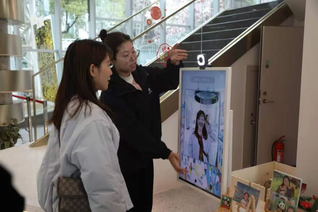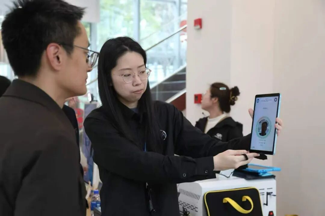 上海原境视界文化科技集团有限公司的"小爱文创"项目,通过原创AI模型库为景区游客提供个性化文创体验,已在多地景区落地。中国电科第21研究所展示"白虹"轻量型外骨骼和四足巡检机器人,体现片区在智能装备领域的集聚优势。上海马贝人智能科技有限公司带来Alma Mini健康监测平板,通过AI视觉算法实现非接触式健康监测,快速测量心率、血压等生理指标并生成健康分析报告。