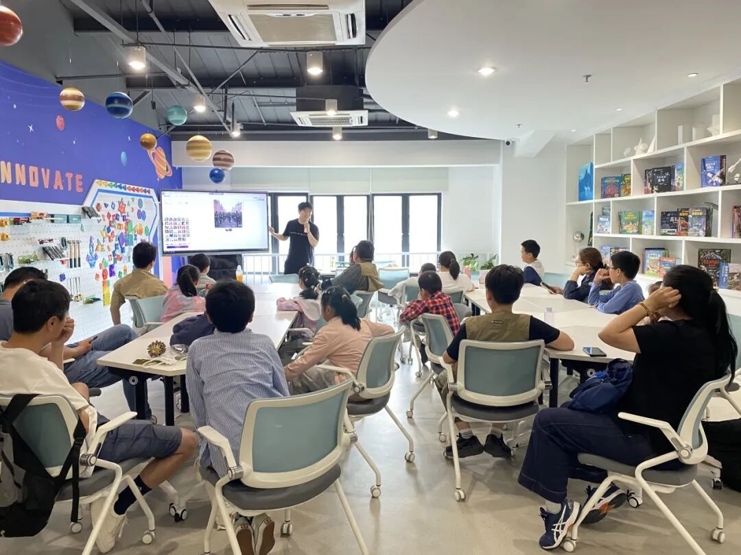这种火热场面如今比比皆是。在指导中心的枢纽带动下,全区“家+书屋”呈现出多点开花的科创底色:上海财经大学王艳华教授的数学课在大学路阵地场场爆满,以逻辑之美解码思维成长;复旦大学化学系的青年学子走进社区,将“火焰魔法”等趣味实验搬到家长孩子身边;中信书店·江湾里店“家+书屋”打造系列AI数智化课程,让亲子家庭零距离感受智能科技魅力,以数智赋能家庭教育,共筑温馨有爱的成长空间。