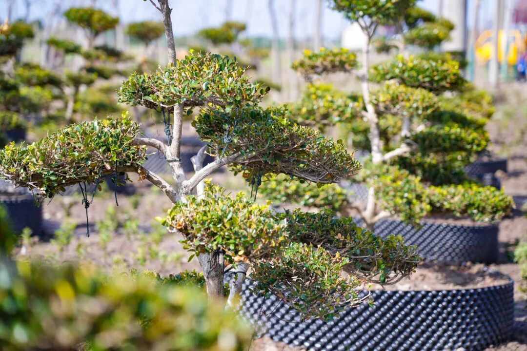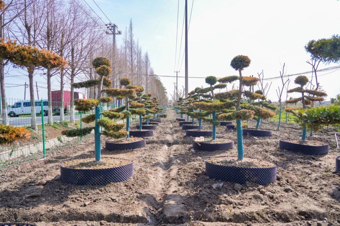 如今,升级改造后的苗圃已完成首期规模化栽植,品种丰富、布局科学,兼顾生态涵养与景观美化双重功效。基地内现有柘树、罗汉松、黄杨、朴树、榉树等乔木类苗木约7500株,红叶石楠、红花继木、杜鹃等小灌木类苗木约8000株。