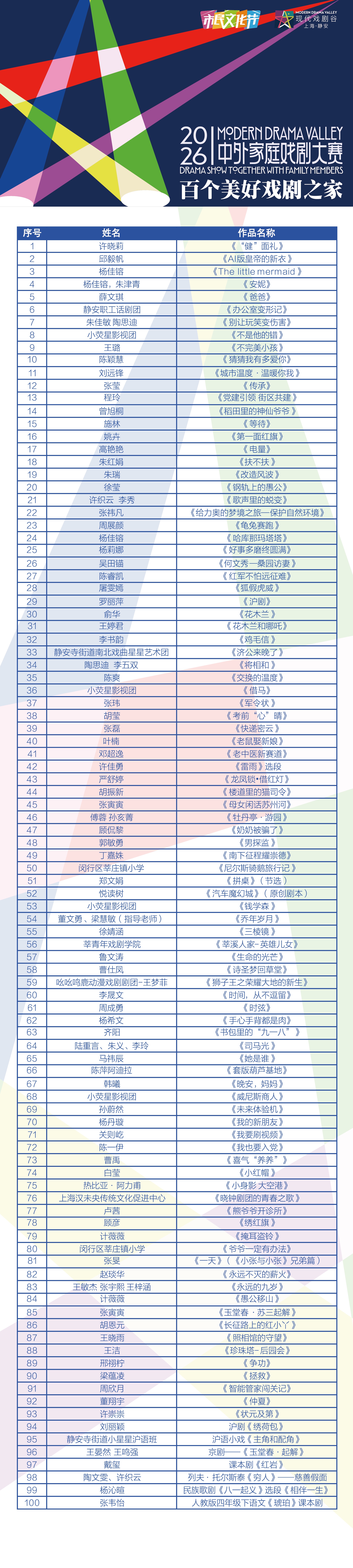 源戏剧赛道“百个美好戏剧之家”完整晋级名单