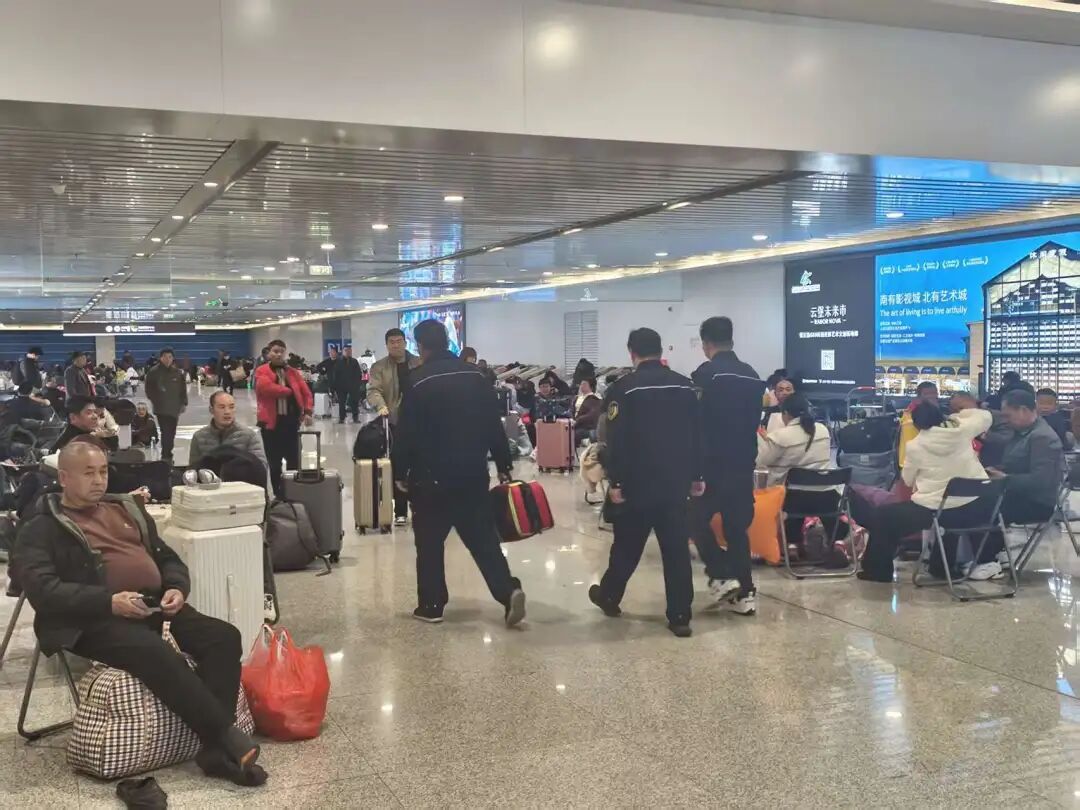 2月23日(正月初七),当天到发旅客达到峰值9万人。为应对增长的客流,各部门紧密联动。2月22日(正月初六),永丰派出所、铁路派出所、轨交派出所、铁路上海松江站、地铁九号线、新开发集团、公交公司……十余家单位围坐一桌,召开返程大客流保障协调会,目标只有一个:确保正月初七当天旅客平安高效疏运。