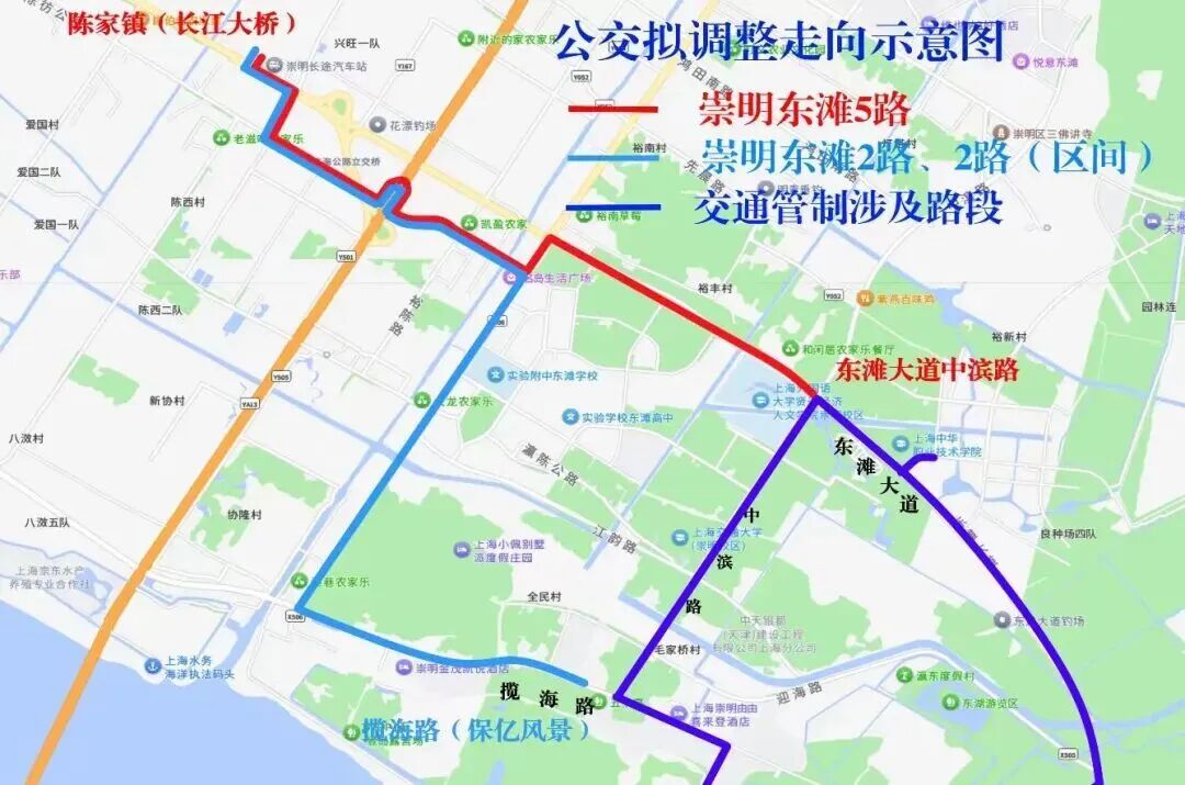 走向:自陈家镇(长江大桥)起经陈海公路、锦陈公路、陈彷公路、北陈公路、东滩大道至东滩大道中滨路(上外贤达学院)(双向)。