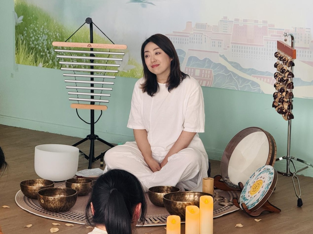参与者刘女士说:“一开始觉得年纪大了,重返职场没什么希望,所以内心一直很焦虑。但在颂钵声响起那一刻,我感觉到一种久违的平静,同时也给自己增添了一些自信。”