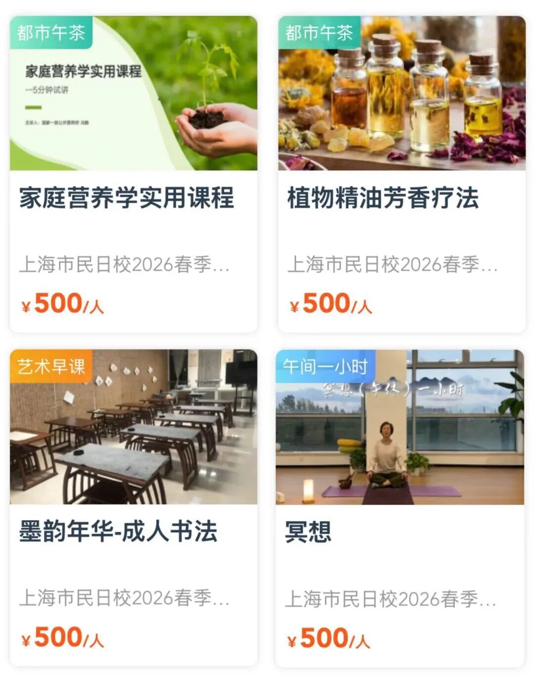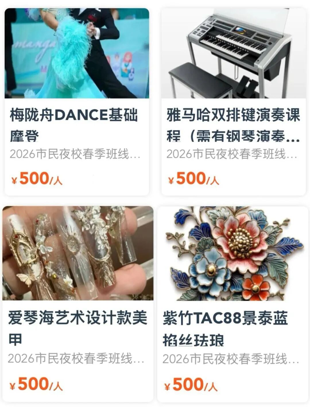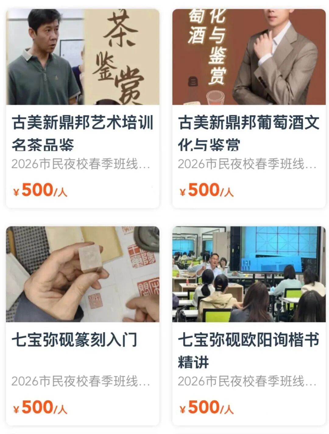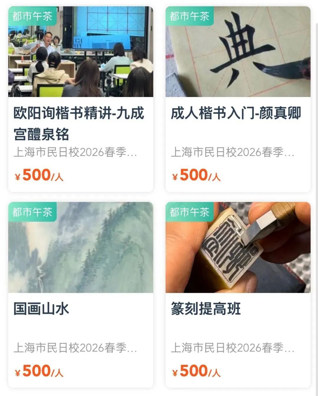 2026市民艺术夜校春季班 2026市民日校春季班 喜欢就要抓紧啦 捡漏! 错过不再有 夜校与日校 最后几天 “捡漏”的机会 就等你了! 上海市民艺术夜校春季班、 上海市民日校春季班的 火爆课程一抢而空, 没抢到课程的市民朋友们, 又急了…… 3月20日17点报名截止, 快来赶上这一波捡漏! 与你喜爱的课程相约, 徜徉艺术的世界吧! 闵行区课程速览(夜校)