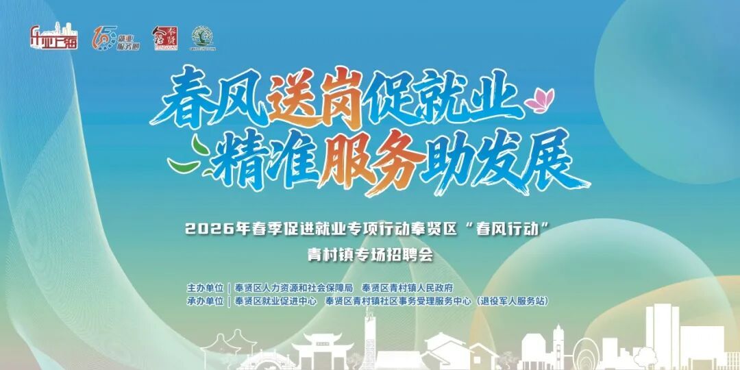 为满足广大求职者的就业意愿和企业的用工需求,积极推动重点群体就业,青村镇将于3月21日(周六)下午举办2026年春季促进就业专项行动奉贤区“春风行动”青村镇专场招聘会。