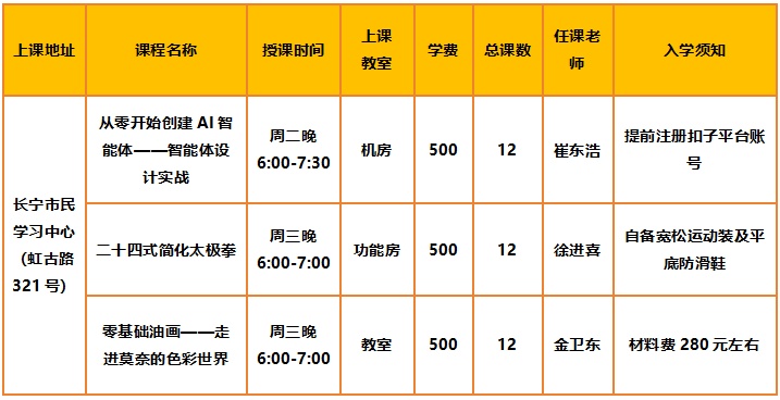 近日,长宁市民学习中心也开启“夜校模式”啦!开设的三大“王炸”课程,涵盖修身养性、艺术熏陶,以及硬核科技,课程还能“先上后付”,首节免费试课,快来给你的晚间时光充充电吧→