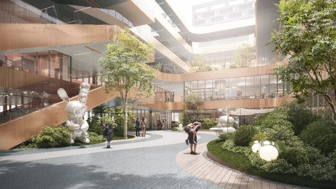 为此,设计者摒弃了传统封闭式商业中心或单一功能建筑的惯常模式,转而构思了一个独特的“半开放院落”空间体系。建筑主体环绕一个开放的室外庭院展开,通过多样化的开口与城市界面形成对话,建筑本身仿佛是一座“多孔的海绵”,能够自发吸纳市民晨练、休憩、交流等非正式的日常活动。一条连通各楼层的公共“立体漫步系统”(由一系列外廊、坡道与半室外楼梯构成),将不同方向的人流自然引入,使建筑内部成为一个连续流动的空间序列。市民可以如漫步于“城市阳台”或“空中街道”一般,不受路径约束地穿行其中,从一个功能区自然地流动到另一个功能区,创造出充满活力的可能。