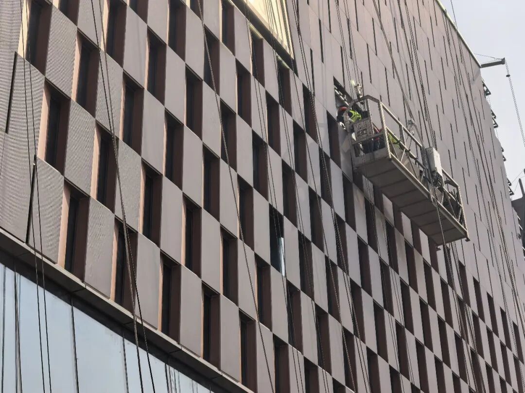记者在现场看到,高达18层的公寓楼与8层的商业综合楼比肩而立,建筑整体面貌已然清晰。工地上,工人正在进行墙体外立面收尾和室外总体绿化施工。