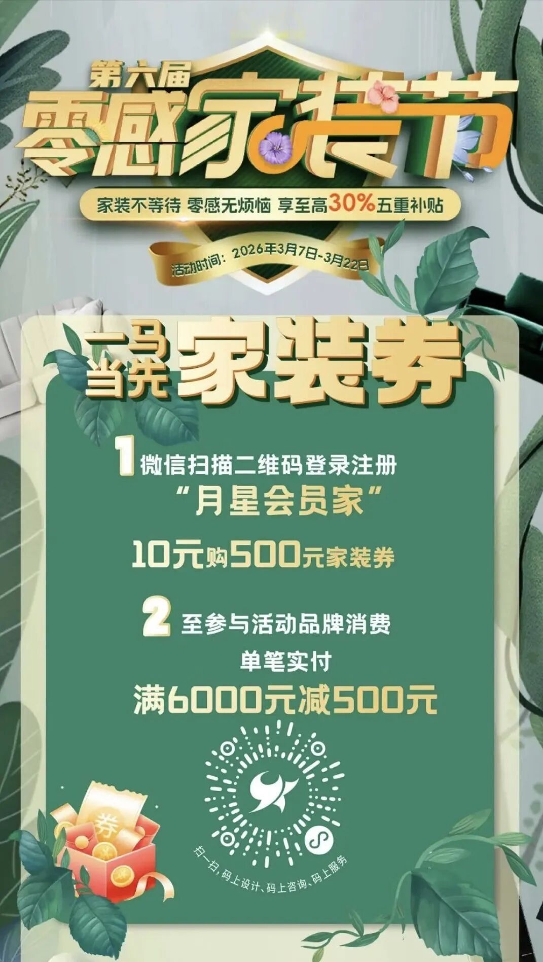 月星家居上海澳门路店在“沪七条”发布后,立即上线了月星家居第六届“零感家装节”,以“家装不等待 零感无烦恼”为主题,推出五重补贴政策,整体优惠至高30%。消费者可通过小程序10元购500元家装券,会员满额还能获赠金牌清洁服务,联合一线品牌打造超级品牌日,睡眠类产品爆款低至99元,还针对性推出中远两湾城专享清洗服务、艺术照拍摄等会员专属活动。
