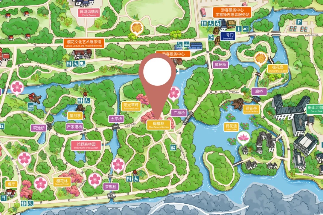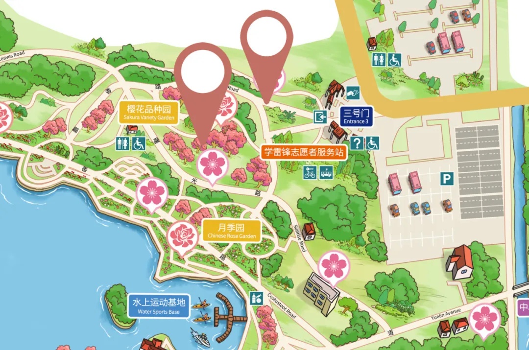 二号门:早樱林、栖杉路