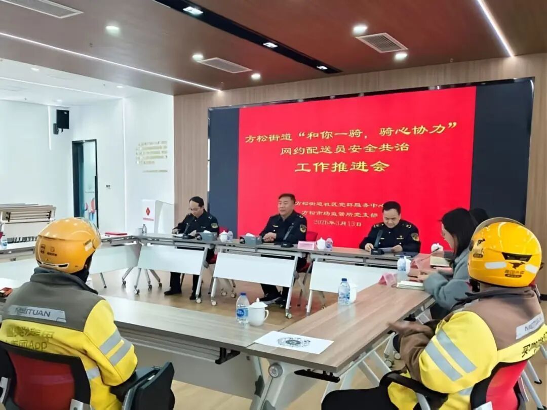 3月13日,方松市场监督管理所党支部联合方松街道社区党群服务中心,正式召开“和你一骑,骑心协力”网约配送员安全共治工作推进会,吹响共治工作集结号。会上,详细解读《共治工作方案》,围绕网络餐饮食品安全与电梯特种设备安全两大核心领域,全面阐述监督员的工作职责、隐患识别要点、信息上报流程及日常管理要求。方案明确建立“每日随手拍、每周排查表、每季度沟通会”常态化工作机制,要求监督员在日常送餐过程中,重点观察网络餐饮后厨环境卫生、食材储存、操作规范、食安封签使用等情况,及时上报电梯运行异常、检验标志缺失、超期未检等安全隐患,切实做到隐患早发现、早报告、早处置。