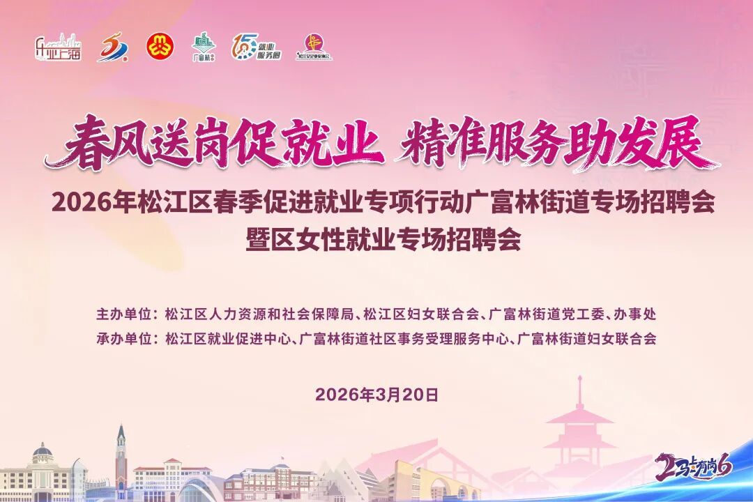 “春风送岗促就业 精准服务助发展”2026年松江区春季促进就业专项行动广富林街道专场招聘会暨女性就业专场招聘会将于3月20日举行。此次招聘会吸引了40家企业踊跃参与,提供140余个岗位,计划招聘人数超1500人。招聘详情↓