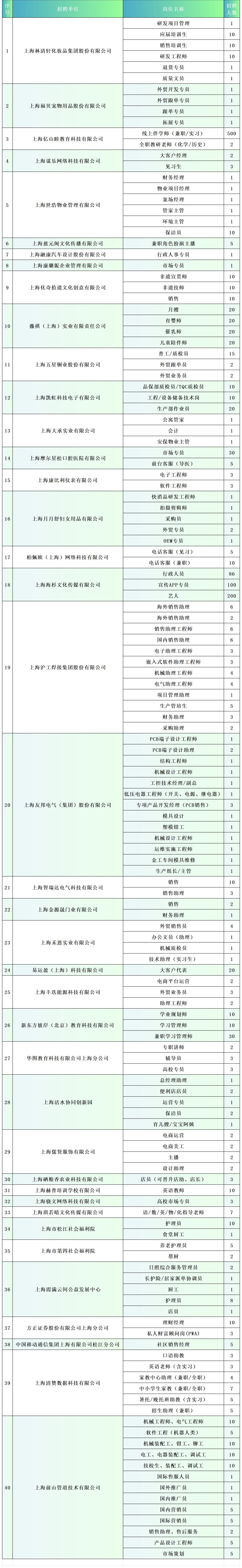 本期招聘会共有40家企业
