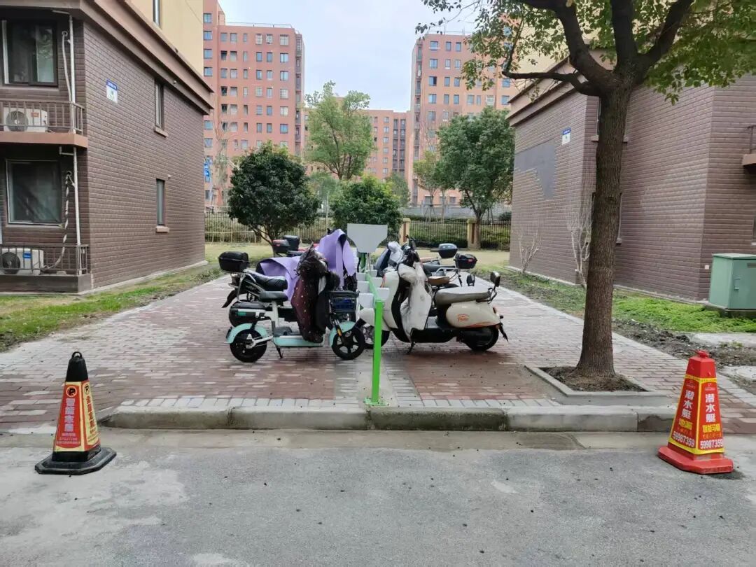 短短十余天,一处占地约120平方米的标准化非机动车停放点顺利建成投用。点位可同时容纳50辆电动车规范停放,配套40个智能充电桩,具备过载保护、自动断电等安全功能,既满足停放需求,又从源头消除充电安全隐患。改造坚持“功能优先、生态兼顾”,在优化空间使用的同时,对周边绿化进行补种提升,实现停车有序、环境美观双向共赢。