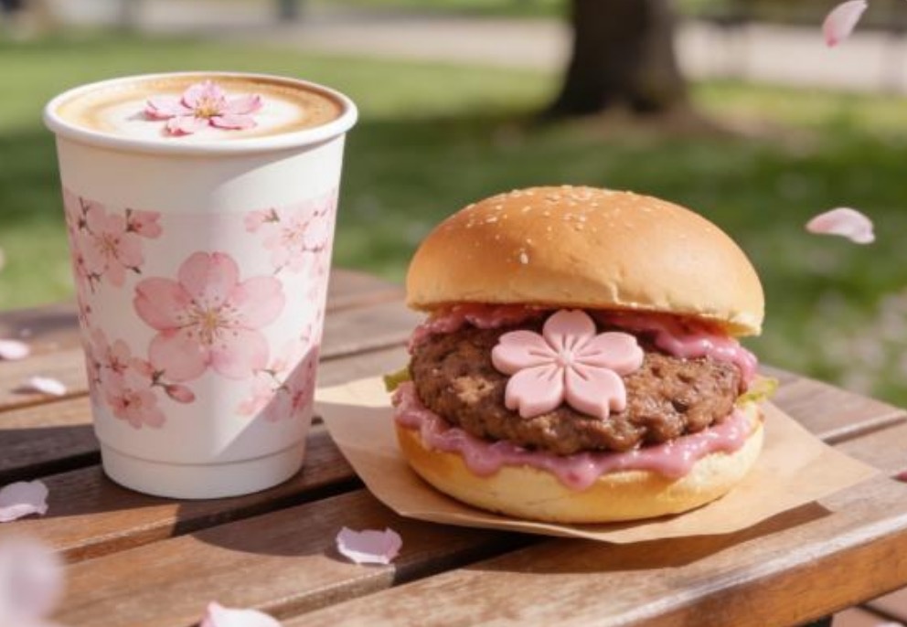 樱花拿铁搭配香嫩汉堡,颜值超高,一口治愈,为游园时光加满能量。