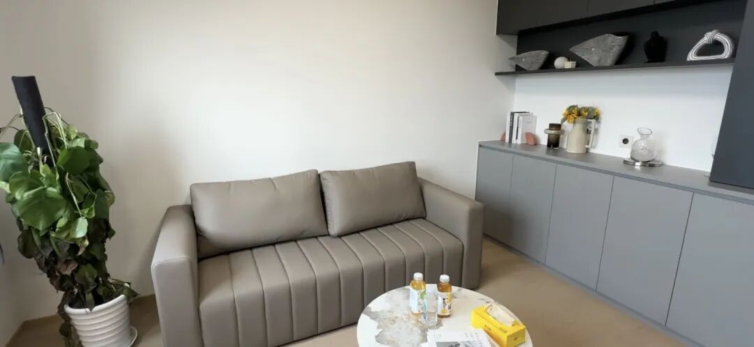 走进样板间,映入眼帘的是整洁明亮的空间布局,一居室户型紧凑实用,家具、冰箱、洗衣机、空调等生活设施配备齐全,基本可以实现拎包入住。对年青人来说,这样的居住条件,显然比“自己一点点添置”省心不少。