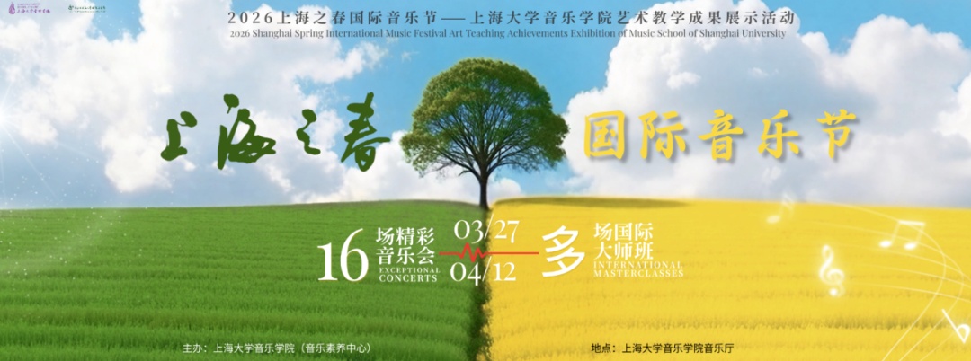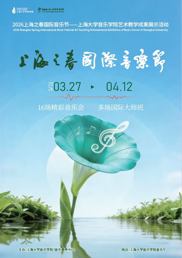 2026上海之春国际音乐节——上海大学音乐学院艺术教学成果展示活动预计举办十六场音乐会,其中包括来自上海大学室内乐团、民乐团、泮池书院合唱团、国际留学生等专场音乐会以及学院专业教师的师生音乐会,还特邀来自香港演艺学院、中国人民大学艺术学院、上海新艺民族室内乐团、大场江南丝竹——新华国乐社的艺术家们举办专场音乐会或交流音乐会。