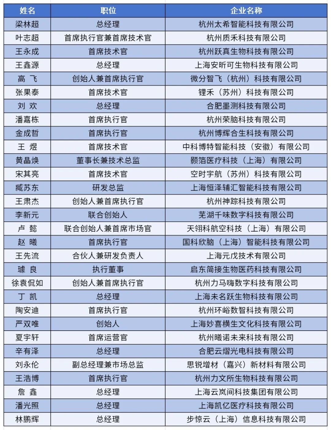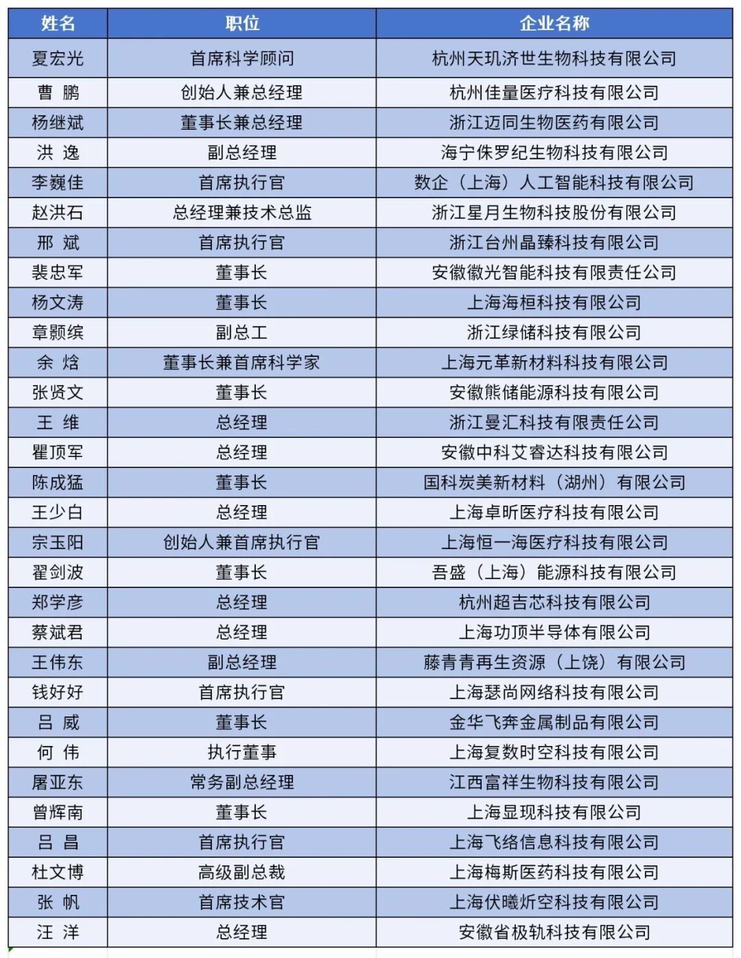 2025年度“星耀G60”创业人才榜单