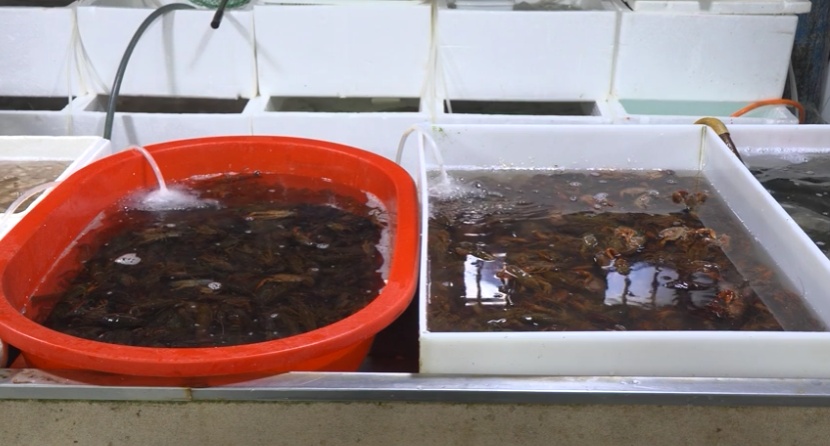 在城桥镇兴桥菜场的水产摊位前,小龙虾被摆放在显眼位置。盆内,大小各异的小龙虾张牙舞爪、活力十足。据一位摊主介绍,今年小龙虾刚上市不久,货源主要来自四川、湖北。价格因个头大小有所差异,但整体比去年便宜不少。小的今年每斤28元,去年卖到35元;大的今年卖40到45元一斤,去年要55到60元。