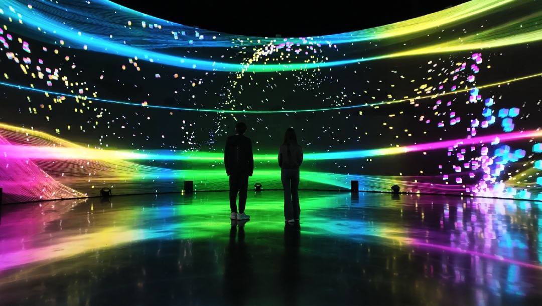 视听展览“春日万物生”打破了传统展览边界,以春河、春雨、春树、星光等十大春日意象为线索,深度融合上海都市烟火气与自然春日意象。依托一号罐独有的360度环幕LED与鼓型声学结构,打造30分钟一循环的沉浸式声景艺术。观众可以或躺、或坐、或自由漫步,在光影流转中体验“声音被看见、画面被听见”的全感官沉浸,于十大春日意象中寻得专属共鸣。该板块从艺术节启幕日起分时段开放。