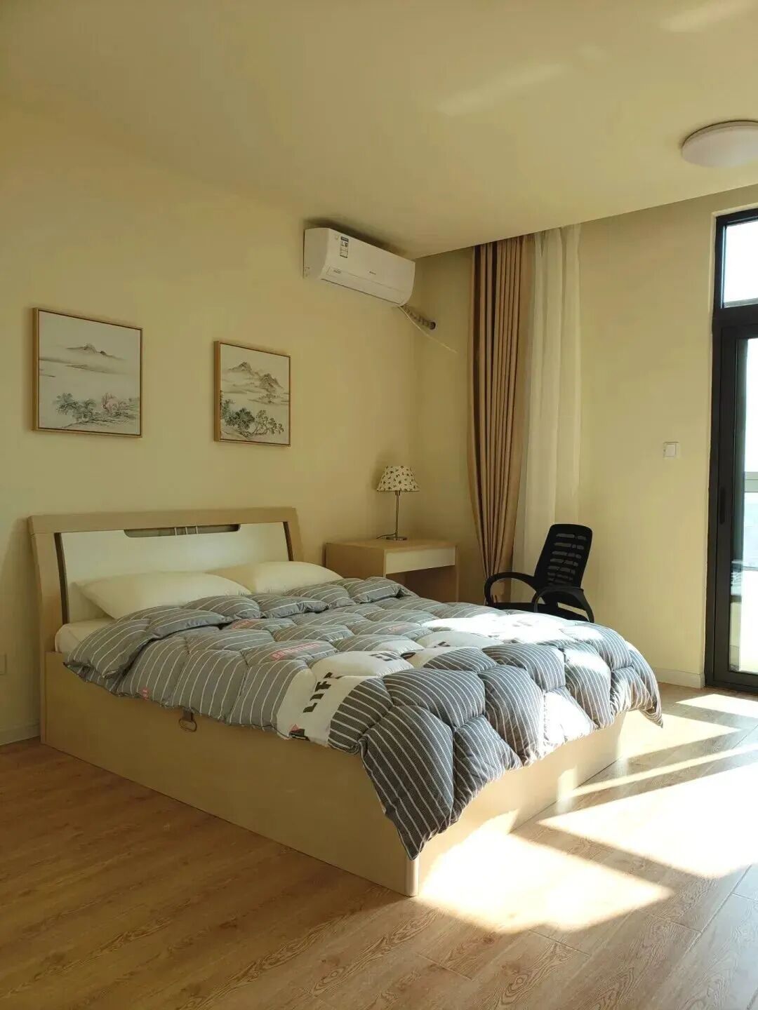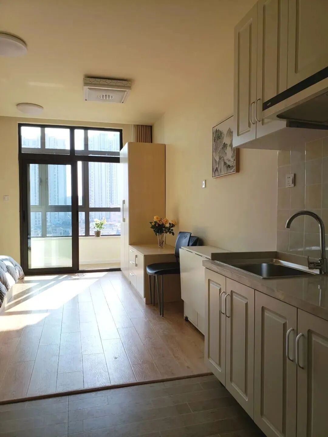 项目配备:床、床头柜、桌子、椅子、油烟机、燃气灶、燃气热水器、空调、浴霸。