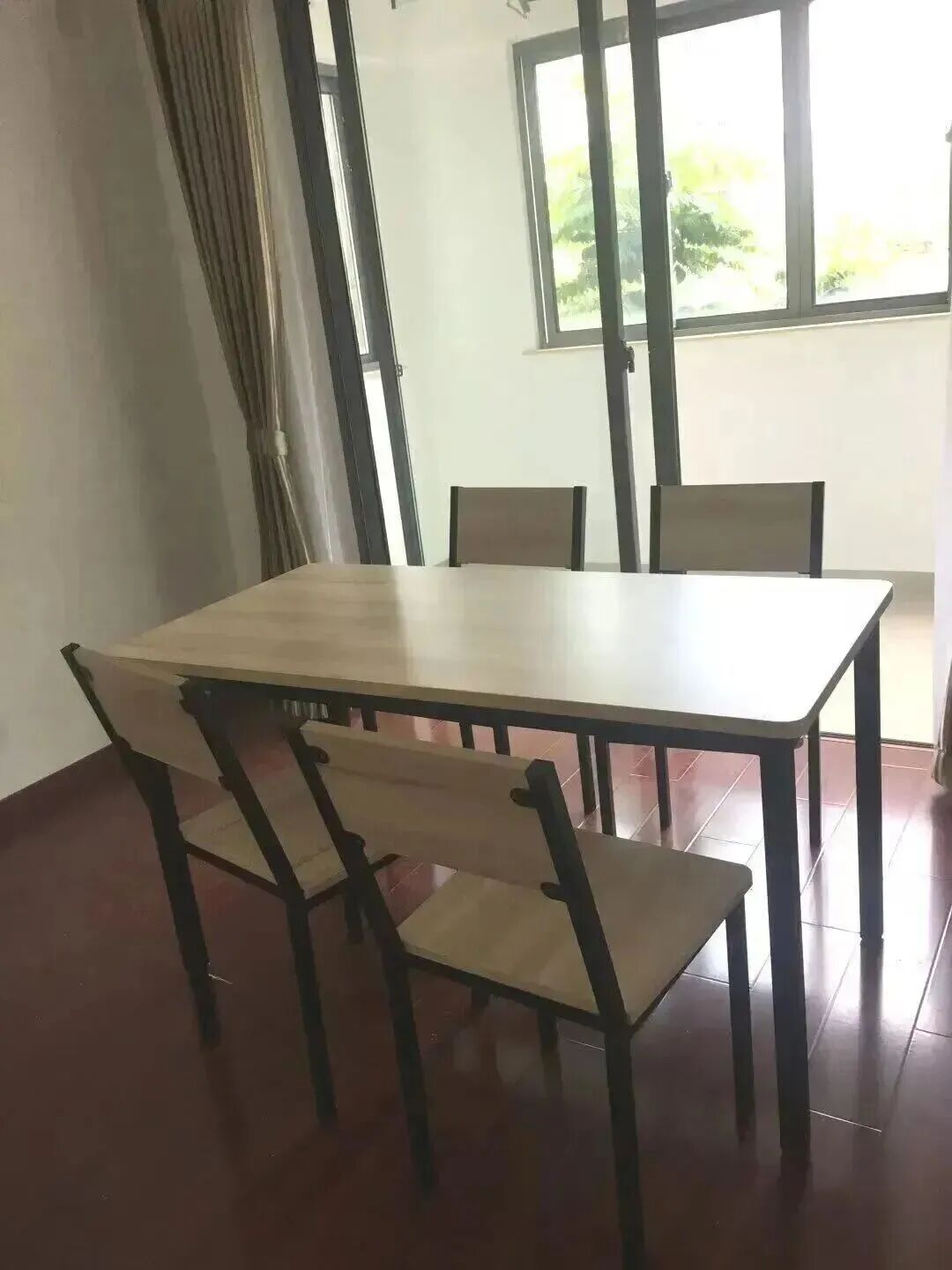 【屋内家具有:床、床头柜、桌子、椅子、油烟机、燃气灶、燃气热水器、空调、浴霸等。】