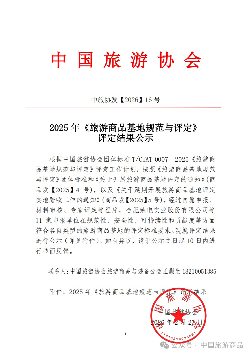 全国旅游商品基地评定,重点围绕企业产品研发、品牌建设、业态融合、服务配套、市场运营等综合能力开展评审,是对旅游商品企业规模化、规范化、特色化发展水平的权威认证。