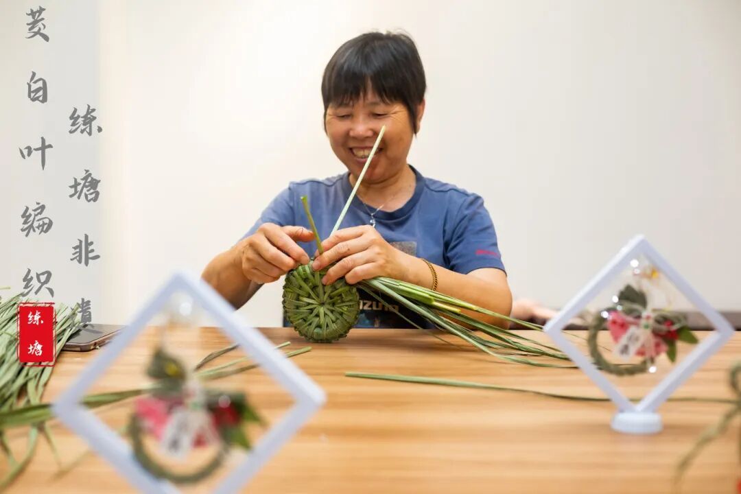 在非遗活化与产业转化方面,阿特麦文化创意产业园以“引进来、活起来、走出去”为发展路径,引入茭白叶编结、土布制作、红木雕刻等多项非遗技艺,打造特色非遗工坊,让传统技艺在老旧厂房中实现焕新升级。其中,茭白叶编结技艺亮相央视《非遗里的中国》,相关产品远销日本、韩国等地,年产值突破5000万元,真正实现农业废弃物资源化、高值化利用。土布熊猫玩偶等文创产品在进博会上热销超2万个,成为广受市场欢迎的网红爆款旅游商品。