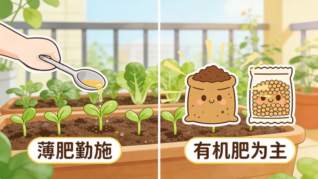 阳台种菜不同于大田种植,空间小、土壤浅,牢记这三原则,肥料用对,菜苗疯长!