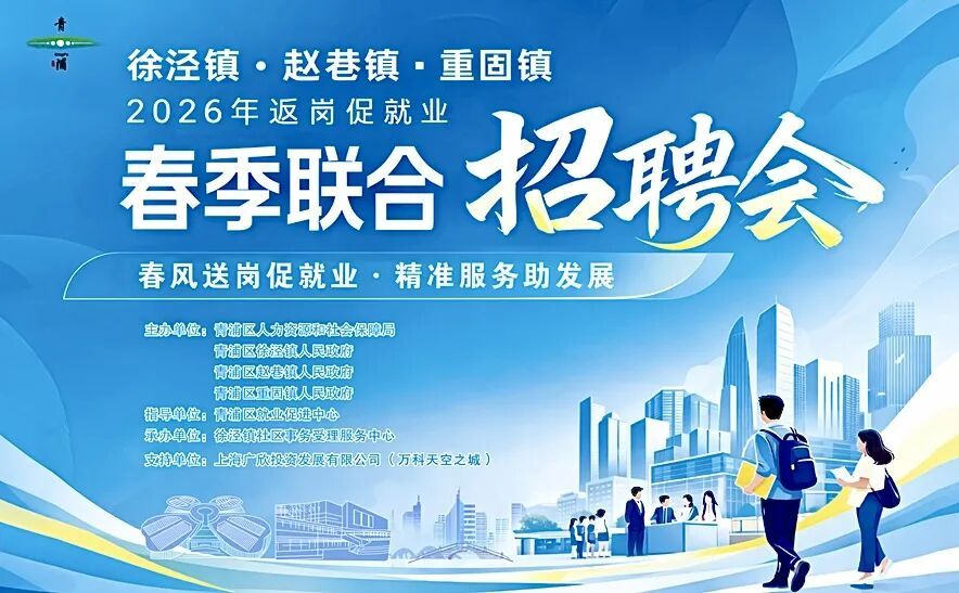 为深入实施就业优先战略,扎实做好稳就业、促就业工作,赵巷镇、徐泾镇、重固镇联合开展“春风送岗促就业 精准服务助发展”春季招聘活动,将优质岗位和暖心服务直接送到您的“家门口”。