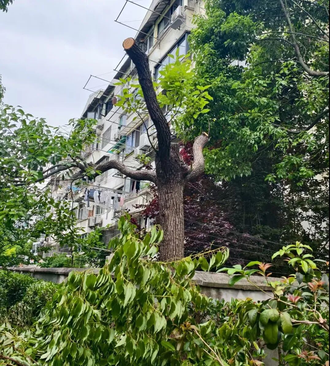 “家里采光通风全被这几棵树挡住了,衣服都晒不干,实在是没办法……”虹桥镇某小区居民王老伯,因为家中采光被香樟树严重遮挡,在没有办理任何审批手续的情况下,用电锯对公共绿地上的三棵香樟进行了“高强度修剪”。