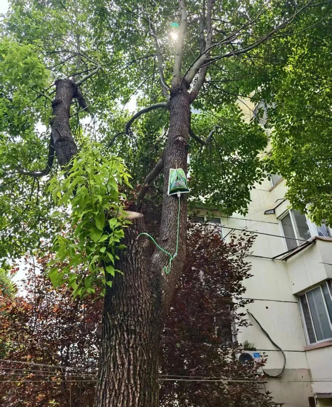 整改为要,生态优先,让受损树木先“活过来”。案件办理过程中,王先生主动配合,为受伤的树木悬挂营养液、精心养护。等到执法人员复查时,两棵被过度修剪的香樟已经恢复长势。