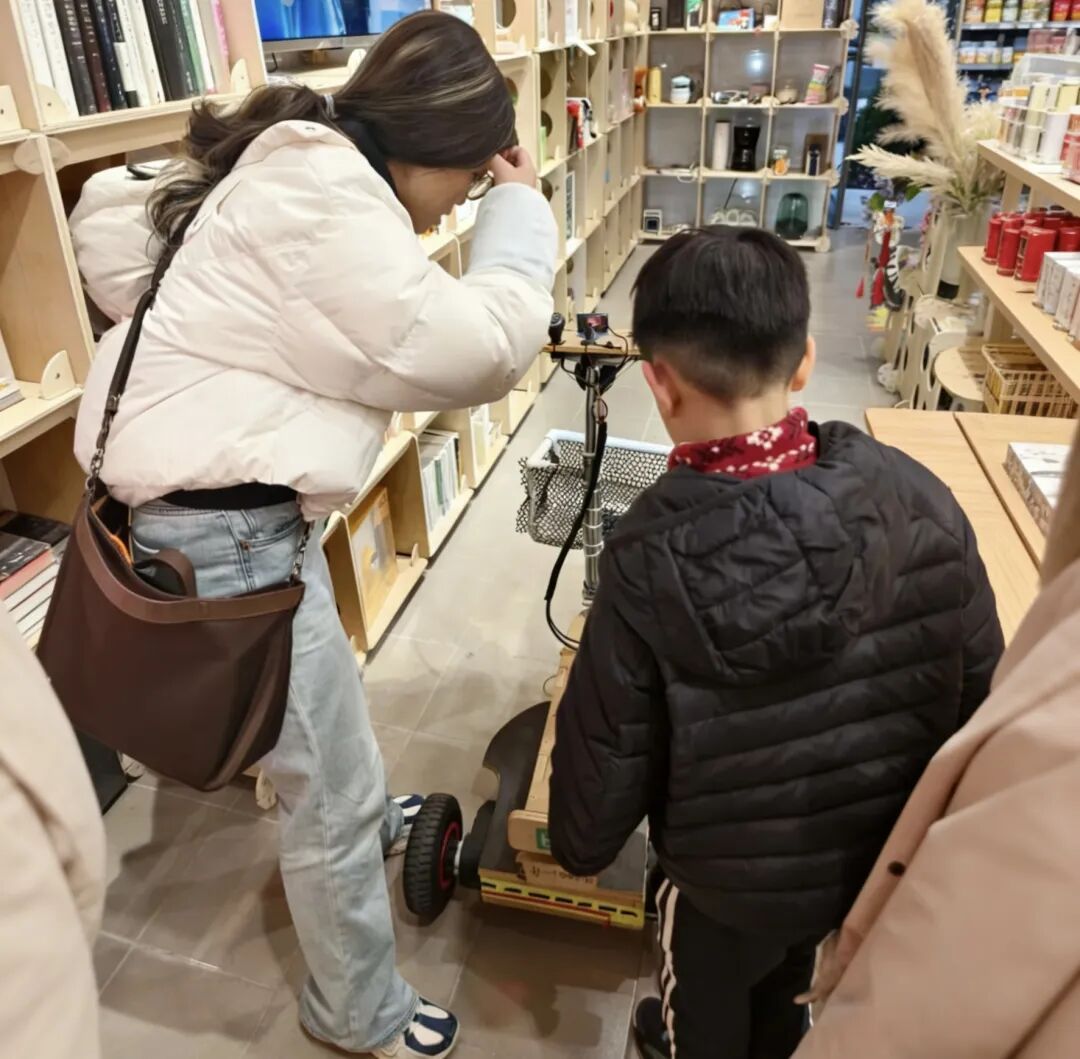 在协和万源×善淘Buy42古美路街道慈善超市,每天都上演着温暖故事。最近,店里迎来了一件特别的“商品”——一辆由13岁少年亲手打造的“电动懒人车”,木质车身搭配酷炫的金属配件,轻轻拧动把手便能前行。这件充满创意的作品一上架,就被一位小朋友“收入囊中”,这笔善款将用于支持助残就业及社区营造等公益项目。