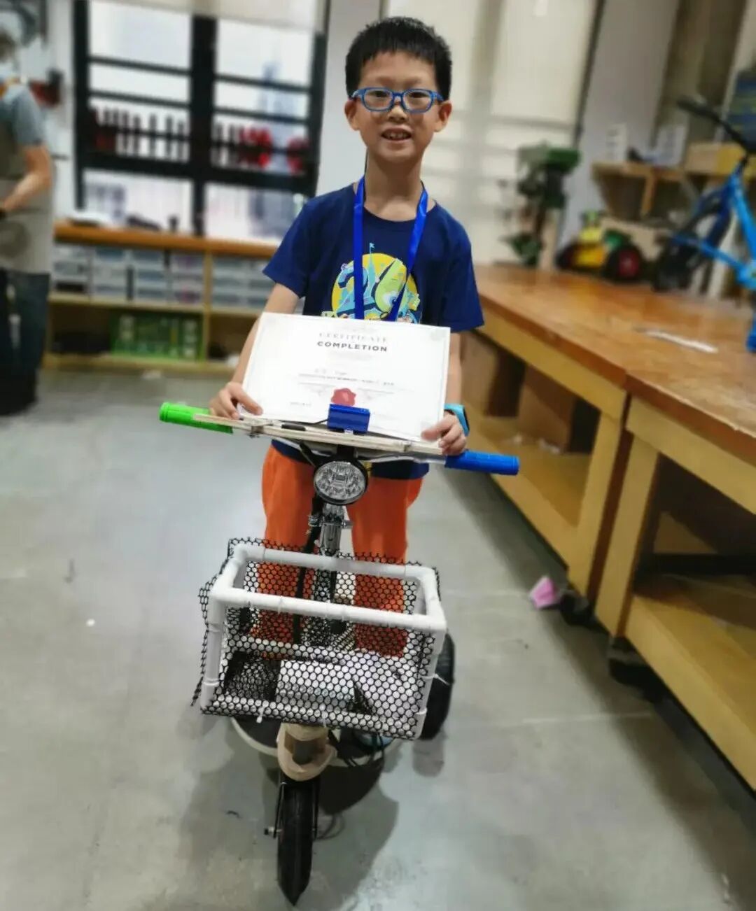 说起这辆备受欢迎的“电动懒人车”,它的制作者是万源城协和双语学校七年级学生孔宇。从切割木板到连接电路,在一次夏令营活动中,他亲手制作了这辆独一无二的“座驾”。“虽然车速只比步行稍快,看起来更像一辆玩具车,但毕竟是我亲手做的。每当在小区里骑行,总能吸引不少小伙伴好奇的目光。