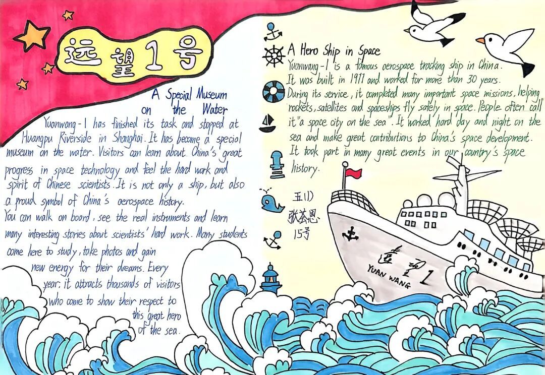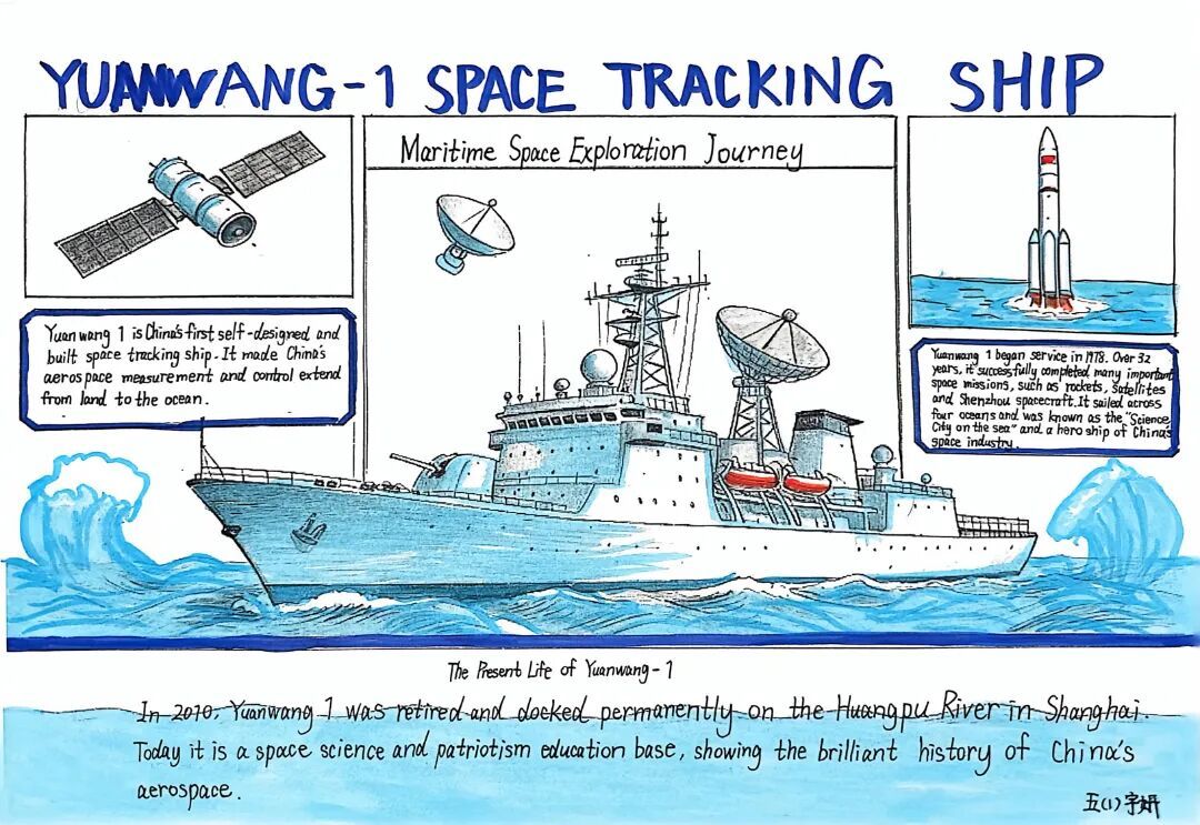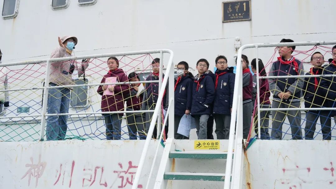 为进一步提升学生的跨学科学习能力,培育科技素养,黄浦区教育学院附属中山学校依托黄浦区“一区一特”科普项目优质资源,组织学生开展了双语科创综合实践。 在黄浦滨江世博段江南造船原址2号船坞旁,五年级百余名学子登上“远望1”号航天测量船这艘功勋“国之重器”,进行实景学习。学生们在沉浸式体验中触摸大国重器,完成科技研学任务单,创作英语解说词小报,厚植科创情怀与家国志向。 黄浦区科协、黄浦区教育局、中船文化传媒和中山学校的嘉宾共同敲响了“远望1”号的船钟,为本节实景课打铃启动。浑厚的钟声回荡在黄浦滨江,也开启了同学们的科技探究之旅。 循着专业讲解的声音,同学们带着研学任务单里的多个“小问号”,实地探寻答案。大家聚焦探测设备、航行安全装置等核心点位,从航天测控雷达到航行雾钟,从舷灯标识到救生设备,边观察、边记录、边提问,将心中的“小问号”逐步转化为清晰答案,在实景体验中搭建起对舰船装置的直观认知,为后续科学探究筑牢坚实基础。 研学尾声,同学们紧扣研学任务单指引,开启跨学科实践创作:大家结合实地观察所得,精心设计舰船科学小卡片,以图文并茂的形式梳理舰船装置名称、工作原理与科学知识点;同时延伸英语学科素养,为小卡片及舰船装置撰写英语解说词,将科学探究与语言运用双向赋能,让研学成果实现多维度落地。 左右滑动查看更多 此次“远望1”号实景研学,是中山学校滨江科创舰船主题综合实践活动的重要组成部分,也是落实跨学科融合科创教育的生动实践。活动以实景为课堂、以重器为教材,让五年级学子走出校园,在“行中学、研中学、悟中学、创中学”中提升科学探究能力,感受航天人的奋斗精神与家国情怀。