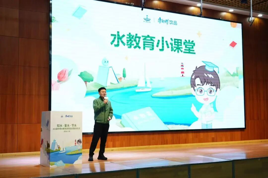 在随后的水教育课堂环节中,康康学长(康师傅推出的备受青少年学生喜爱的IP形象)通过生动的科普讲解与互动问答,带领学生了解水资源分布、科学饮水常识以及日常节水方法。