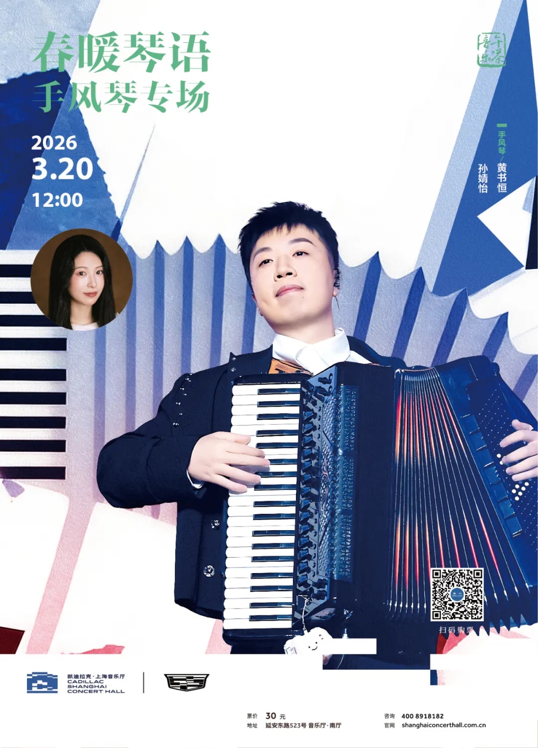 3月20日,“音乐午茶”春分特别企划春暖琴语——手风琴专场将进行线上直播,为观众们带来十首关于中外春日主题的作品,从民歌、童谣再到探戈,用富有呼吸感的手风琴奏响春日温暖。
