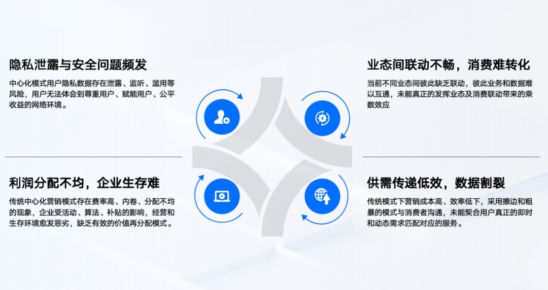 受平台商业竞争、利益格局固化及多方协作机制不完善等因素制约,文商旅体展各领域企业面临收益分配不均、运营效率低下、数据安全承压三重困境:资源权益分配不清晰导致企业利益被稀释,数据壁垒与业态割裂造成营销成本高、消费转化难,隐私泄露风险加剧经营不确定性,严重制约企业可持续发展与市场竞争力提升。
