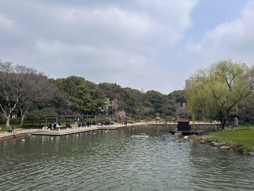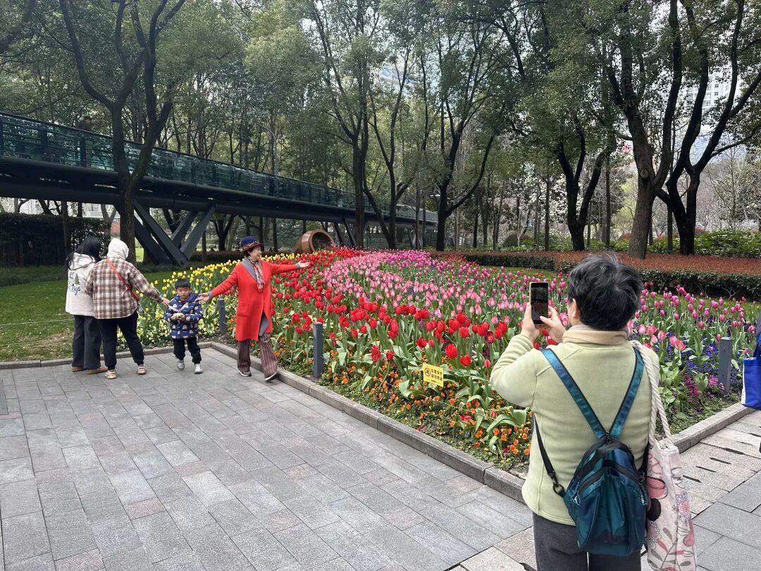 在徐家汇公园里,市民们纷纷走出家门,享受这份春日晴好:郁金香花海前,大家举着手机定格缤纷瞬间;乒乓球台旁,老人们挥拍对打、活力满满;步道上,健身队伍伴着春风舒展身姿;湖畔垂柳依依,桃花初绽,人们在长椅上闲坐闲聊,温柔春光尽数藏进烟火气满满的春日图景里。