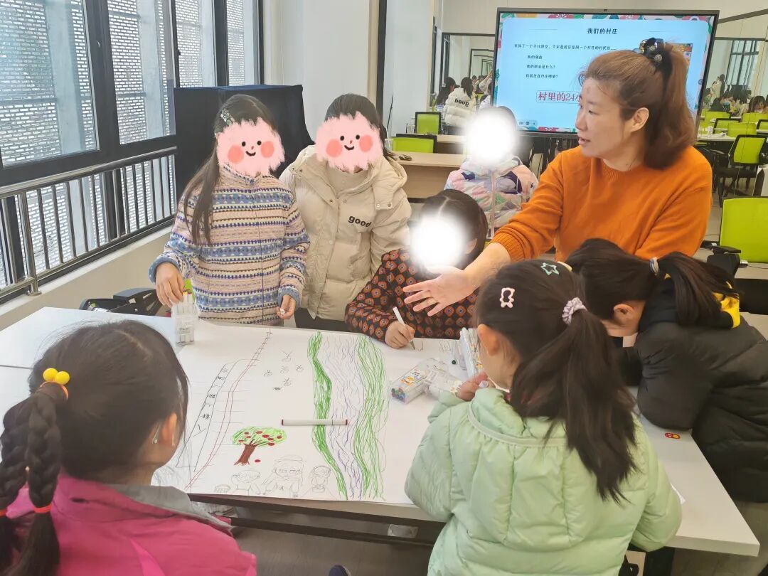创作过程中,孩子们充分发挥想象力,相互探讨村庄的模样、分工协作完成绘画,有的勾勒房屋轮廓,有的填充色彩,有的点缀细节。在彼此的交流与配合中,孩子们不仅完成了属于自己心中的“村庄”作品,更在实践中慢慢摸索出高效的沟通方式,体会到团队协作的意义,悄悄打开与人交往的心扉。