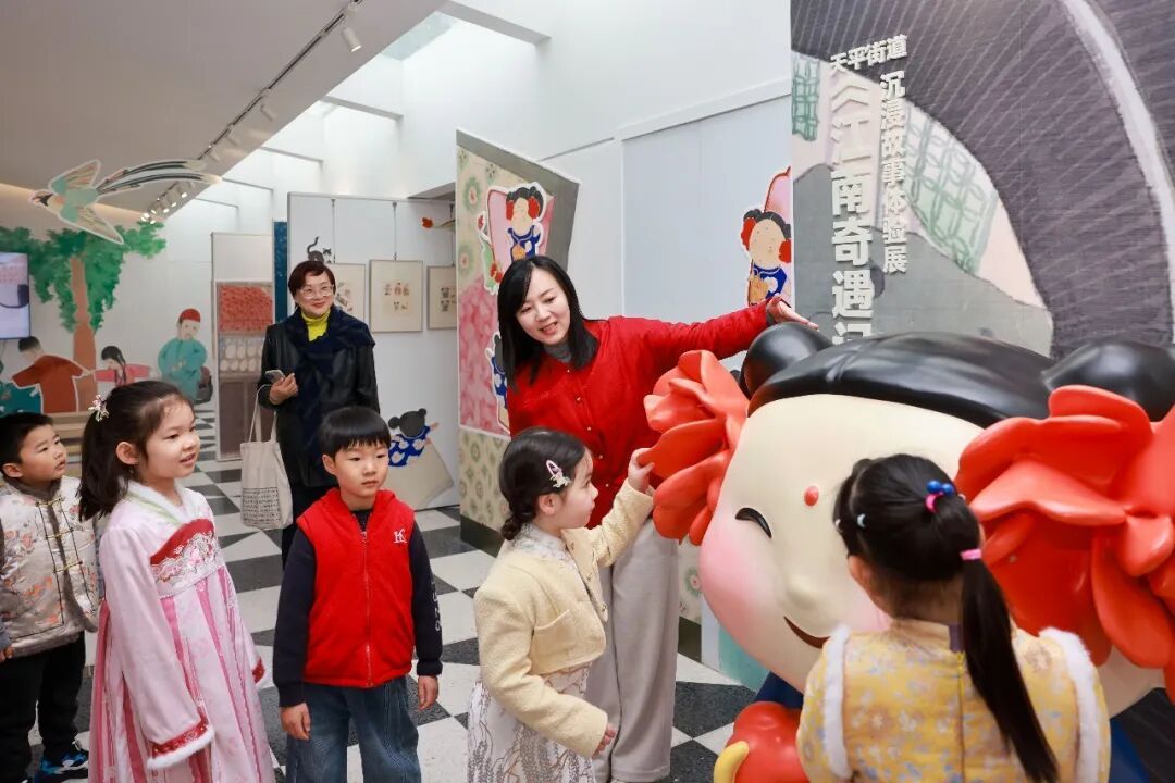 在家门口的社区空间,就能近距离感受专业博物馆打造的沉浸式文化体验活动。3月17日,上海博物馆“江南奇遇记”沉浸式故事体验展首次走进社区,在徐汇区天平街道永嘉路578号都市之光公共艺术空间正式开展。展览依托上海博物馆馆藏文物与原创绘本打造,通过场景化、故事化、互动式呈现,让社区孩童在趣味互动中触摸历史、感知江南之美,让高雅文博文化走进寻常百姓的生活圈。