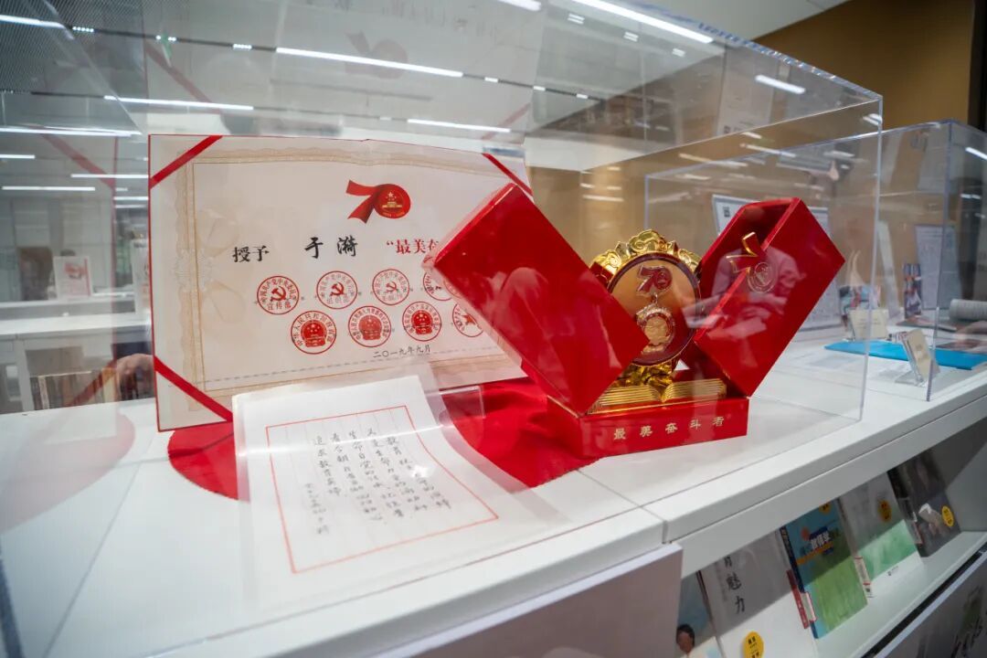 展览设有“于漪图书角”,包括“以书为伴,家国情怀铸师魂”“教书育人,生命与使命同行”“撰书著说,建自信中国教育”“荐书用书,启智增慧润新人”四大板块,同时展出了于漪老师的手稿和奖章,全景呈现了于漪老师教书育人的职业生涯。
