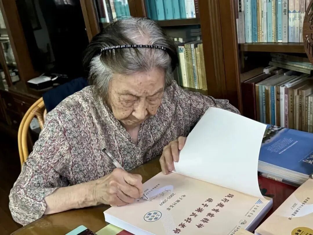 2024年,于漪老师在家为上海图书馆编的《践行教育家精神 做于漪式好老师——电子期刊荟萃(1979-2024)》签名