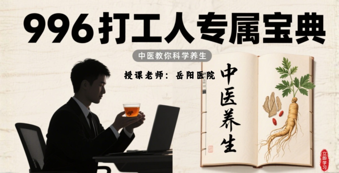 职场奔波,健康为先!课程聚焦打工人常见的颈椎酸痛、失眠焦虑、脾胃不和等健康问题,带来系统实用的中医养生知识与方法。从常见体态问题自我评估与保养、居家康复颈肩腰腿酸痛,到挖掘中药里的五彩养生秘籍,寻找专治996常见病的穴位黑科技,为打工人的健康保驾护航,助你在高强度工作中调理身心,保持元气满满。