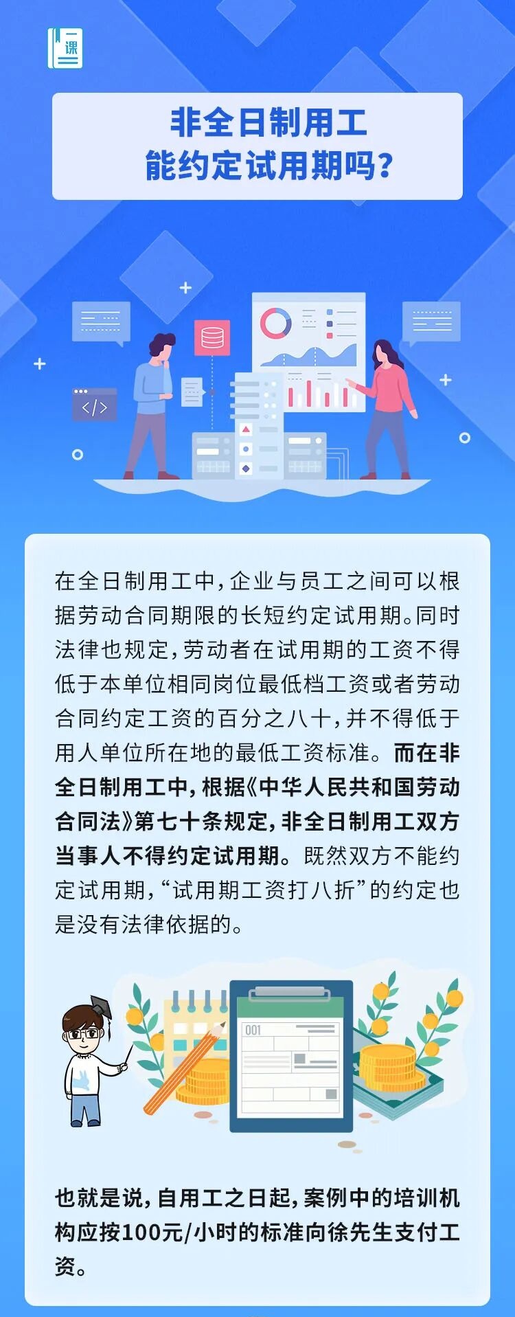今年3月,徐先生与一家培训机构签订协议,担任书法老师。双方约定徐先生的用工方式为非全日制,用工期为半年,按照100元/小时的标准向其支付工资,同时约定试用期为2个月,试用期间,工资打八折,为80元/小时。徐先生觉得非全日制不应约定试用期。单位的做法对吗?