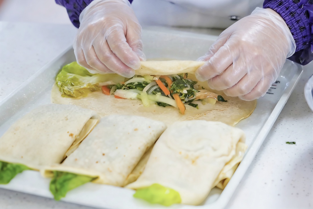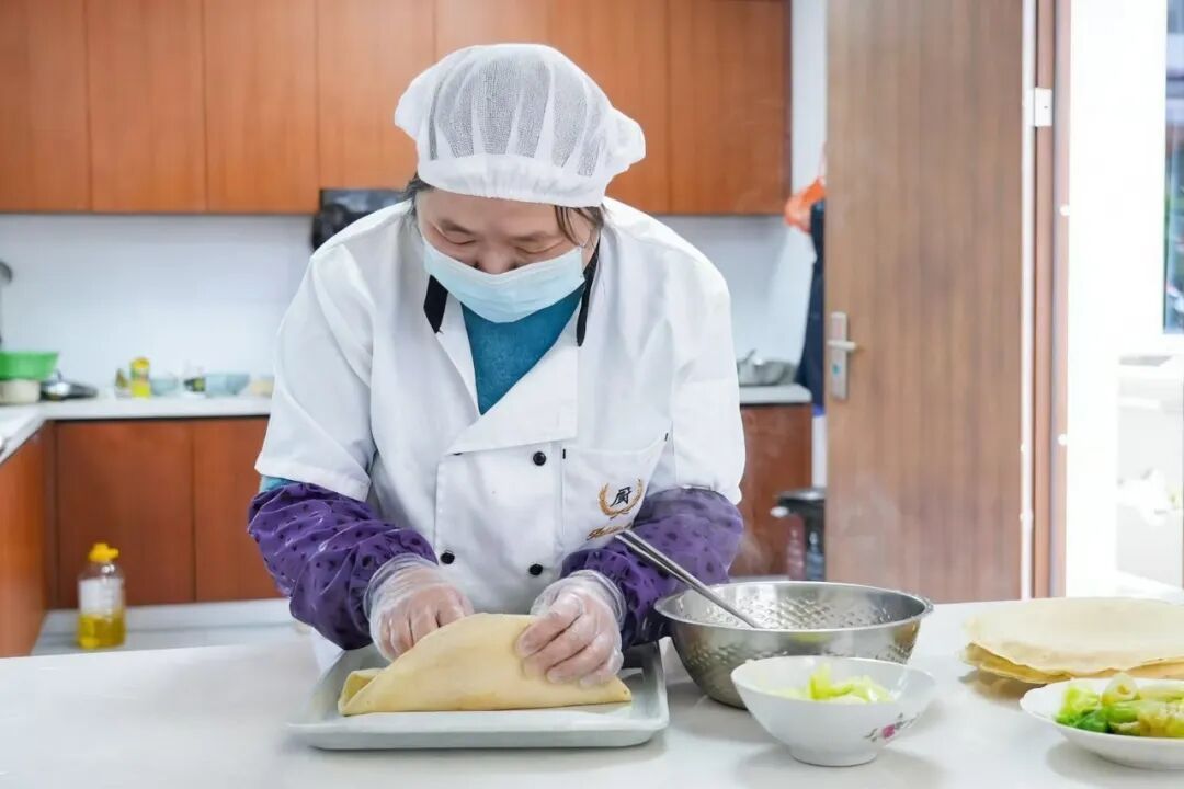 “给老人们准备餐食,最关键的就是要贴合他们的口味。”钱阿姨说道,“春饼是颇具特色的时令美食,借着春分的好时节,我们特意做给院里的老人们尝鲜。平日里我们也会换着花样烹制美食,就是希望老人们吃得开心、吃得健康。”