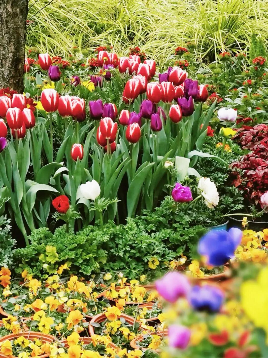 走进梅川公园郁金香花圃,仿佛踏入了梵高的画作,红色郁金香如火焰般热烈。
