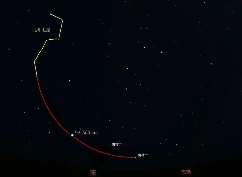 找到角宿一和角宿二,就找到了苍龙七宿中的第一宿——角宿。(恭喜你,找到“龙首”啦~)