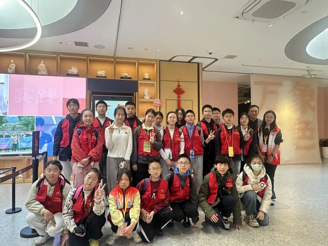 在徐汇区“新时代好少年”志愿者讲解员的引导下,小记者们驻足于一件件珍品前,或认真聆听细致观察,或快速书写讲解要点,或调整参数拍下美照。从刷屏全网的《神话》(玉漱公主),那薄如蝉翼的只有0.2毫米的薄胎瓷衣,到融四象、百花与和平意象的《世博和鼎》,抑或象征创作者人生意境的《瓷·语——出淤泥而不染》,传统与创新碰撞出的艺术火花,让孩子们大开眼界,又各有所爱。